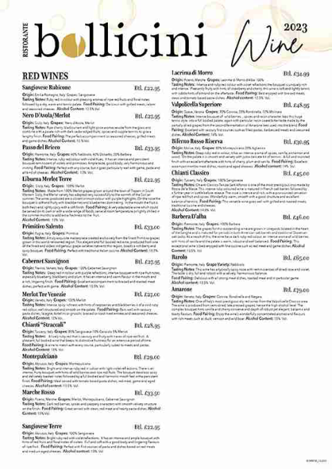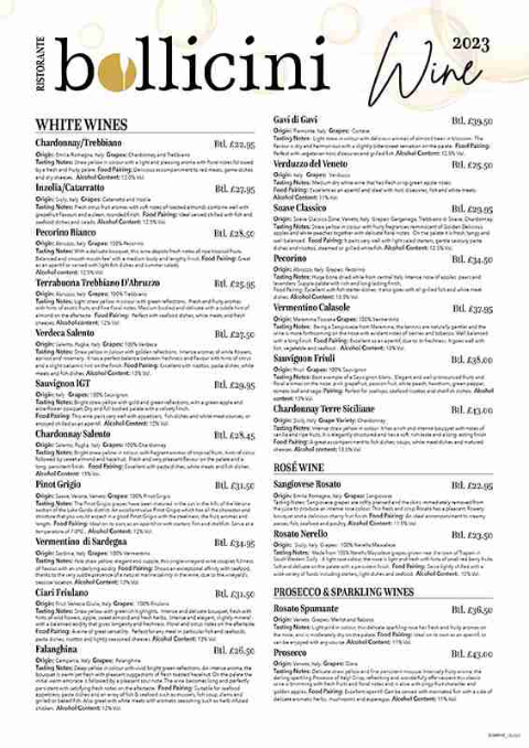 The pasta selection at Bollicini is equally impressive. The Spaghetti Carbonara is a rich and creamy dish that offers a perfect balance of pancetta, eggs, and Parmesan, while the Penne Arrabbiata provides a spicy kick, ideal for those who enjoy a bit of heat in their meals. Additionally, the restaurant’s seafood offerings, such as the Linguine with Clams, showcase fresh, locally sourced seafood that’s full of flavor.