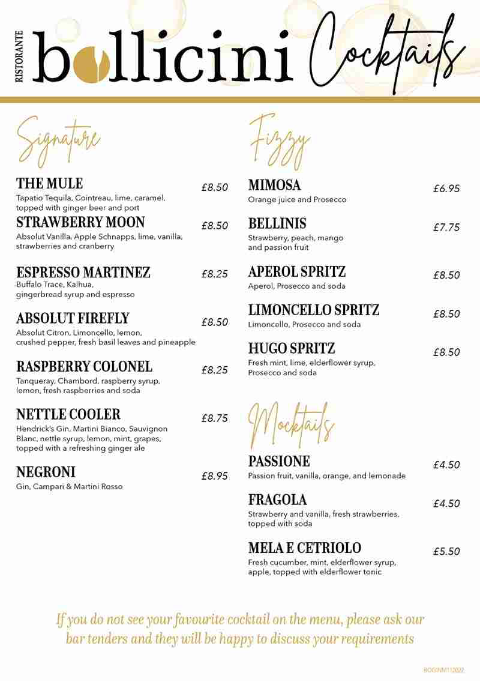 Bollicini, located in the heart of Chester, offers a unique dining experience that blends Italian and Mediterranean flavors with a modern twist. Known for its stylish ambiance and exceptional service, the restaurant's menu is a testament to its culinary excellence, catering to a wide range of tastes and preferences.